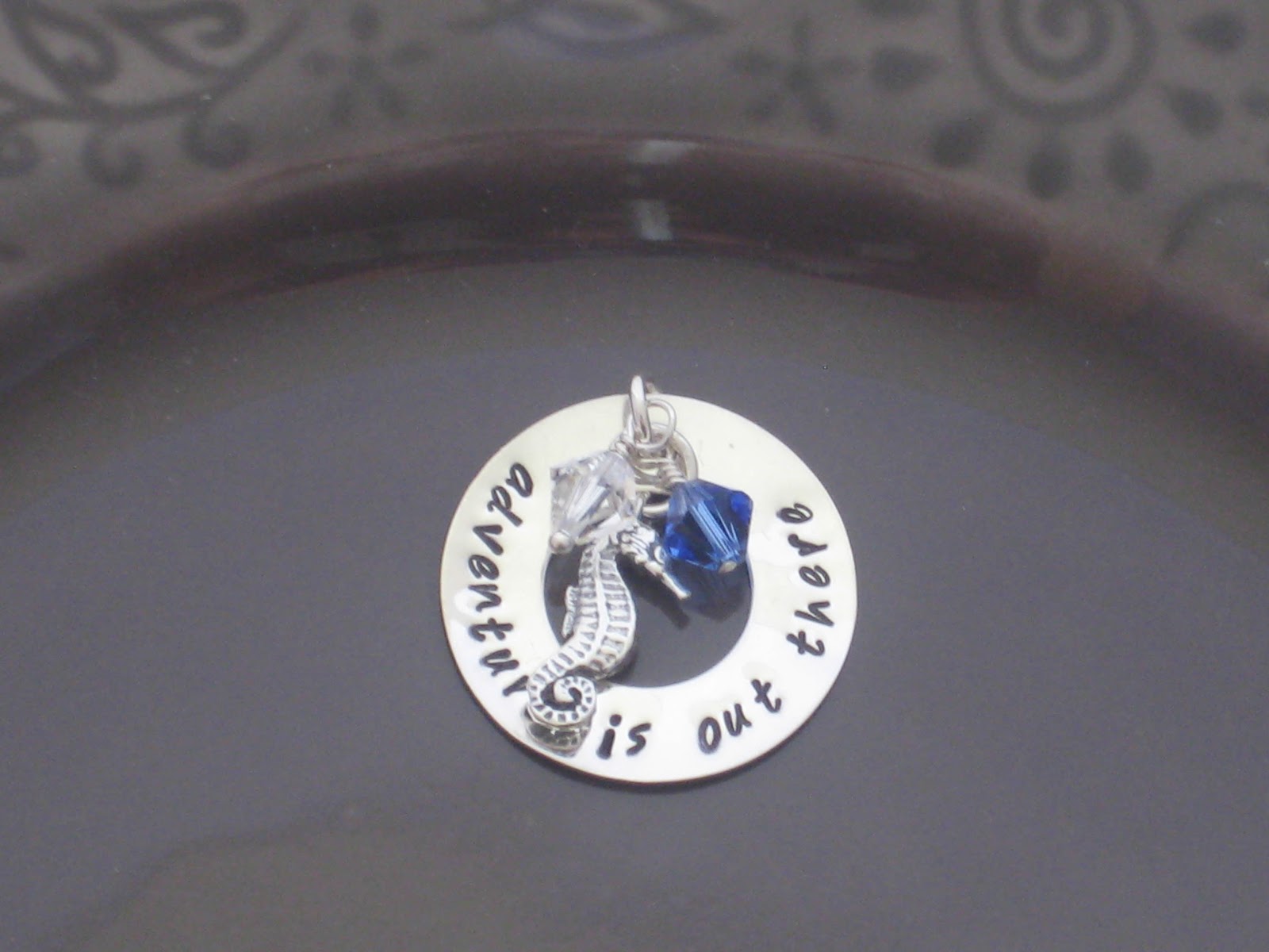 $48 (1" sterling silver circle washer disc $30, sterling silver sea horse charm $12, crystal beads $6)